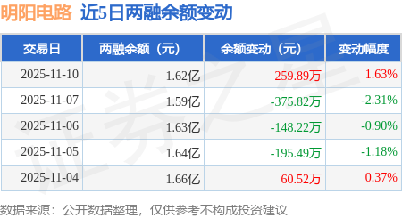 证券之星消息,11月10日,明阳电路(300739)融资买入1150.98万元,融资偿还891.08万元,融资净买入259.9万元,融资余额1.62亿元。