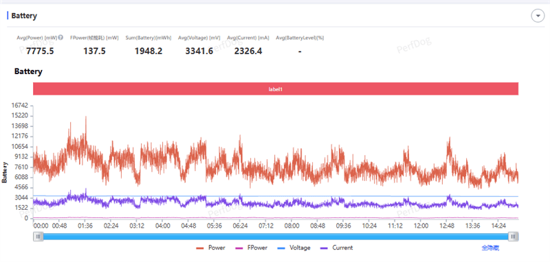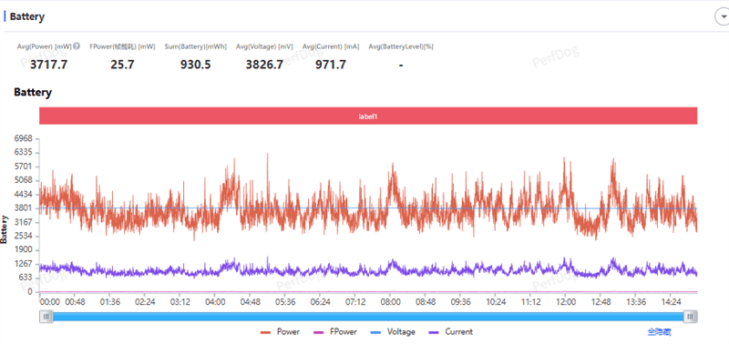 当然,游戏的功耗也是水涨船高,平均功耗达到3.71W。但每帧能耗控制的还不错,25.7mW每帧。
