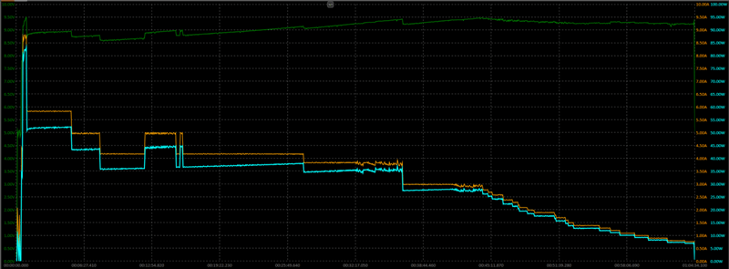 在第27分时略微降流,回归到35W,弥补逐渐上升的电压带来的功率上升。
