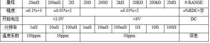 电阻测试范围宽: 20mΩ~2MΩ 9档量程