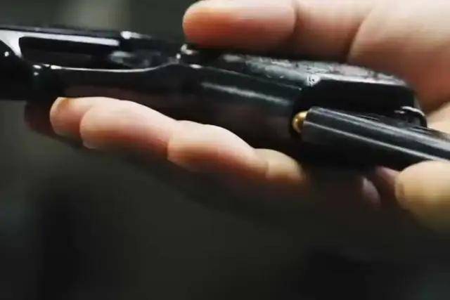 ▲电视剧《除暴》里77式手枪单手上膛的镜头,如果他已经上过膛但忘记了,这一下就会让手枪走火。