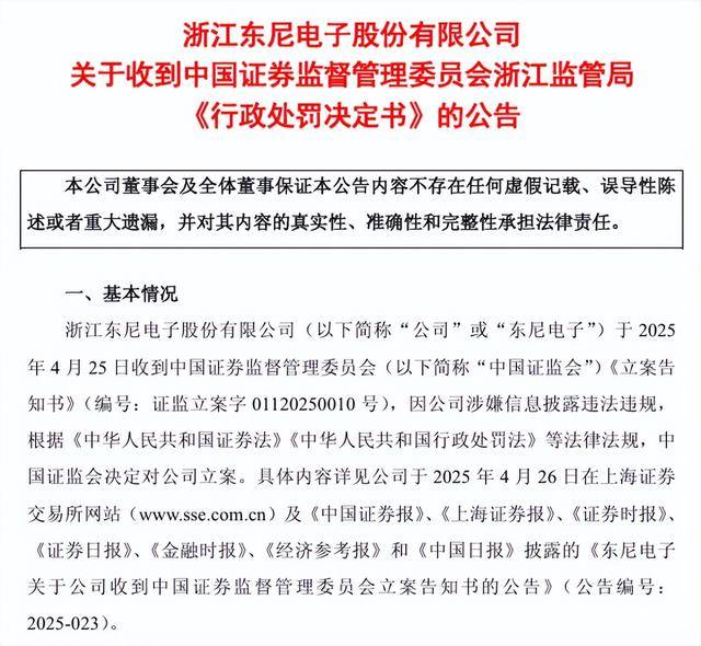 11月12日,ST东尼(证券代码:603595)发布公告,已正式收到证监会浙江监管局下发的《行政处罚决定书》。因涉及重大合同披露不及时及财务报告虚假记载等多项违法违规行为,与多名高管一同领下千万罚单。