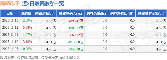 商络电子融资融券信息显示,融资方面,当日融资买入1.89亿元,融资偿还1.4亿元,融资净买入4899.47万元。融券方面,融券卖出0.0股,融券偿还0.0股,融券余量0.0股,融券余额0.0万元。融资融券余额5.38亿元。