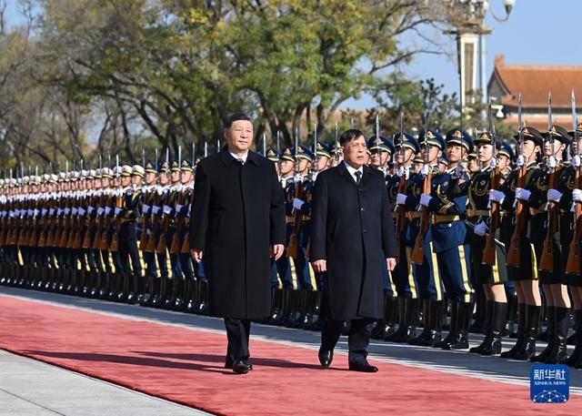 11月14日上午,国家主席习近平在北京人民大会堂会见来华进行国事访问的泰国国王哇集拉隆功。这是会见前,习近平在人民大会堂东门外广场为哇集拉隆功举行欢迎仪式。