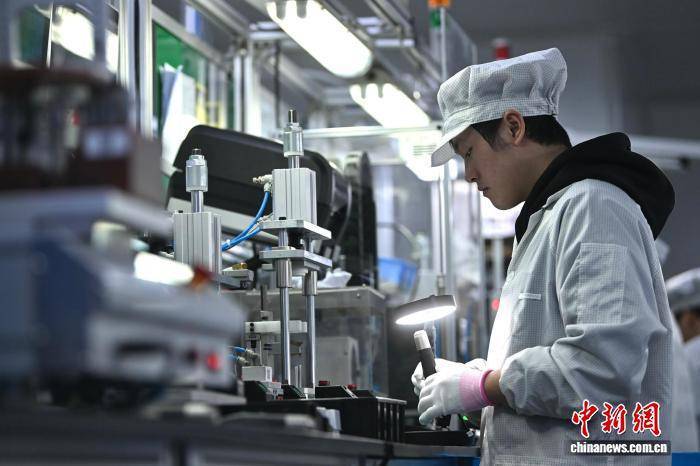 11月17日,休宁县昌辉汽车电器(黄山)股份公司的生产车间内,工人正在组装汽车配件。中新社记者韩苏原 摄