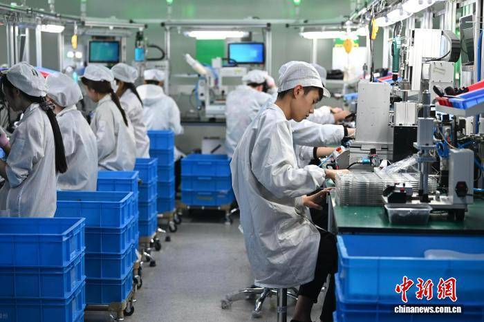 11月17日,休宁县昌辉汽车电器(黄山)股份公司的生产车间内,工人们正在组装汽车配件。中新社记者韩苏原 摄