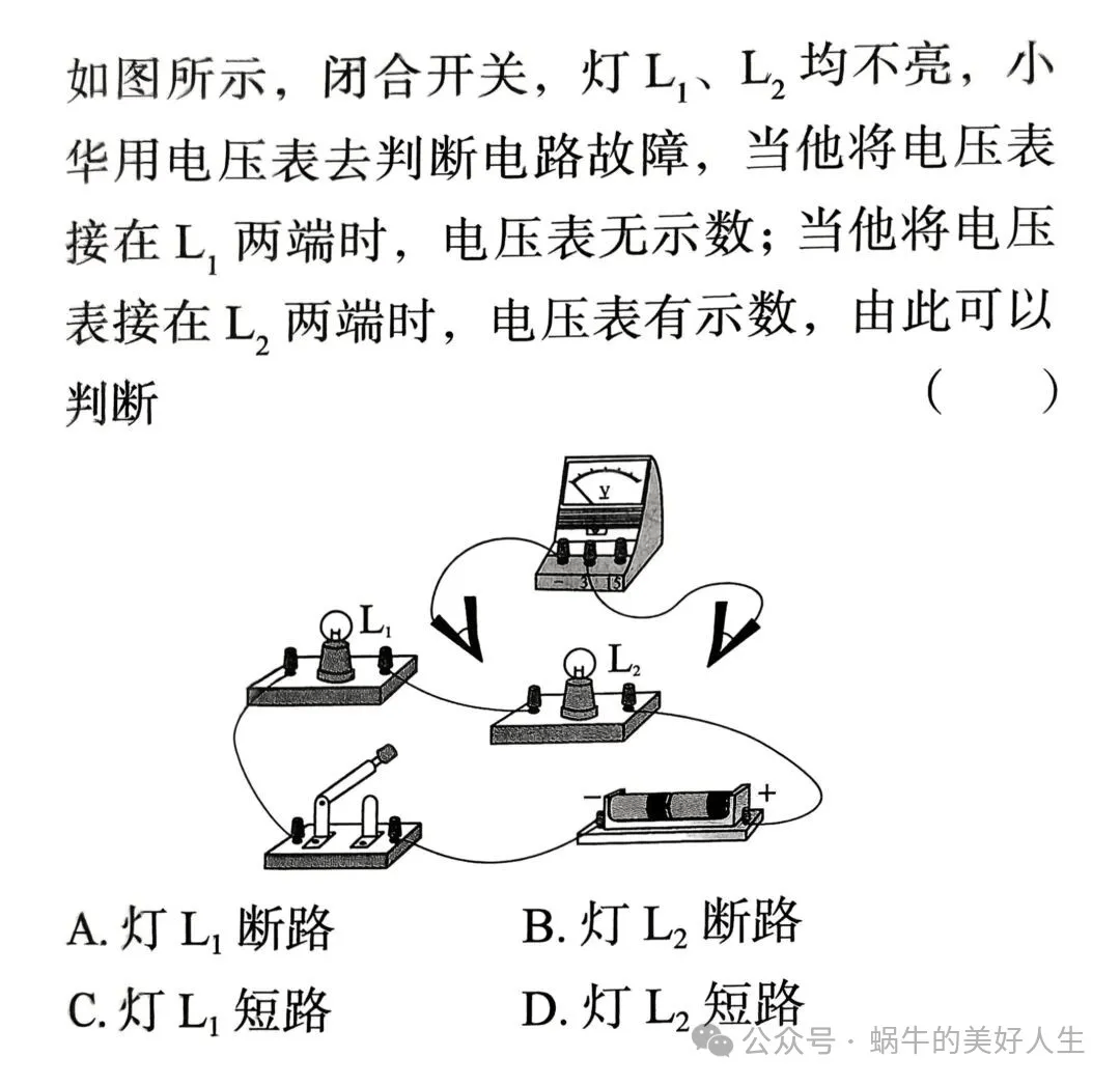 如果电压表有示数,说明灯泡L₂断路;如果电压表示数为0,则L₁断路。