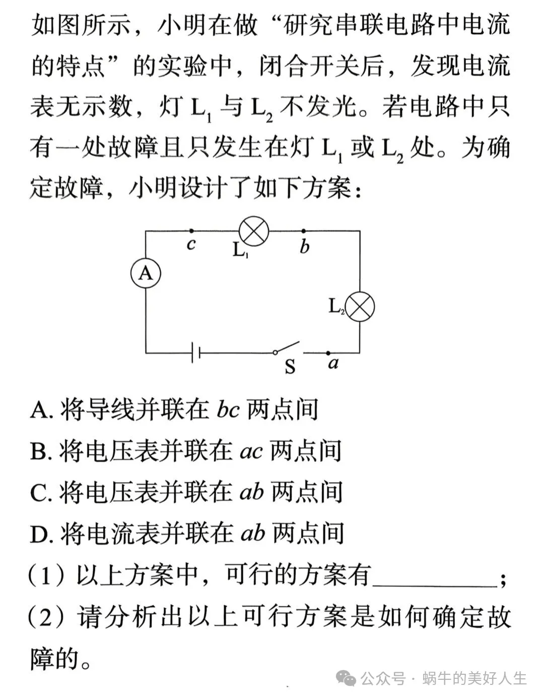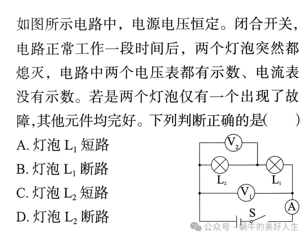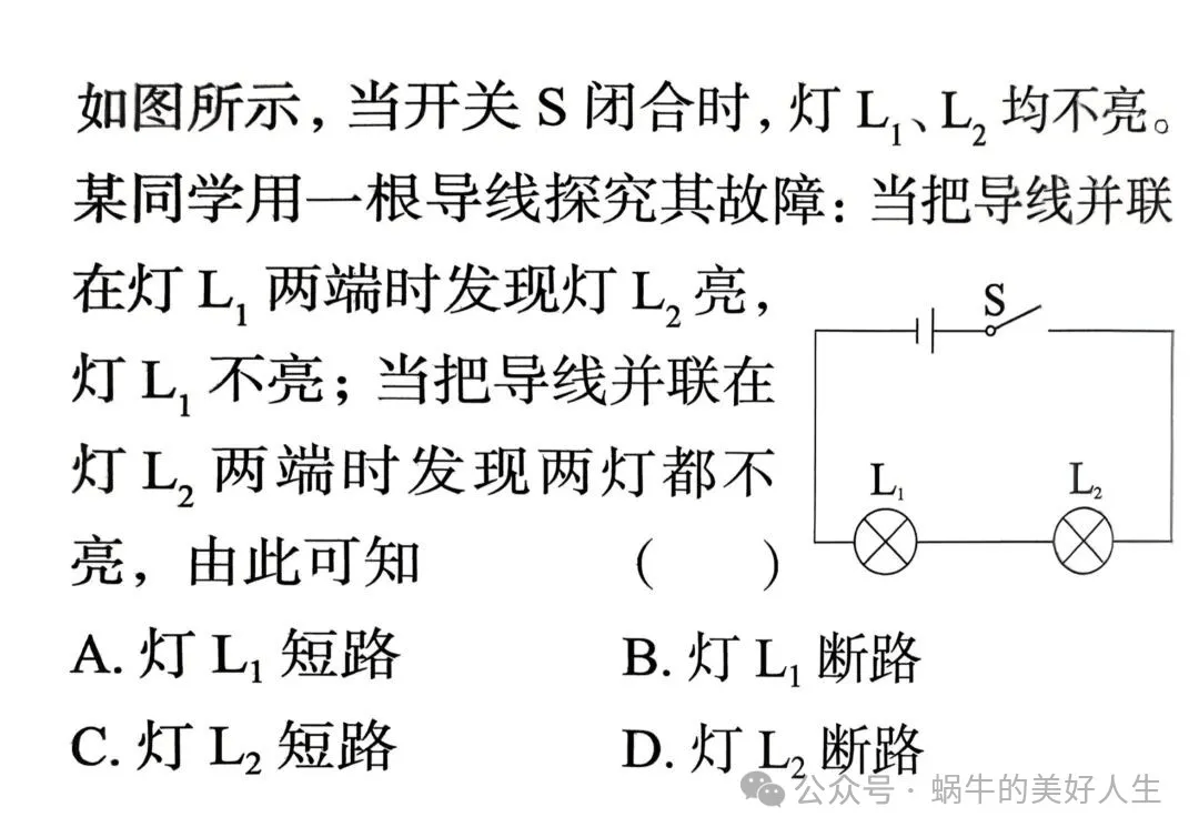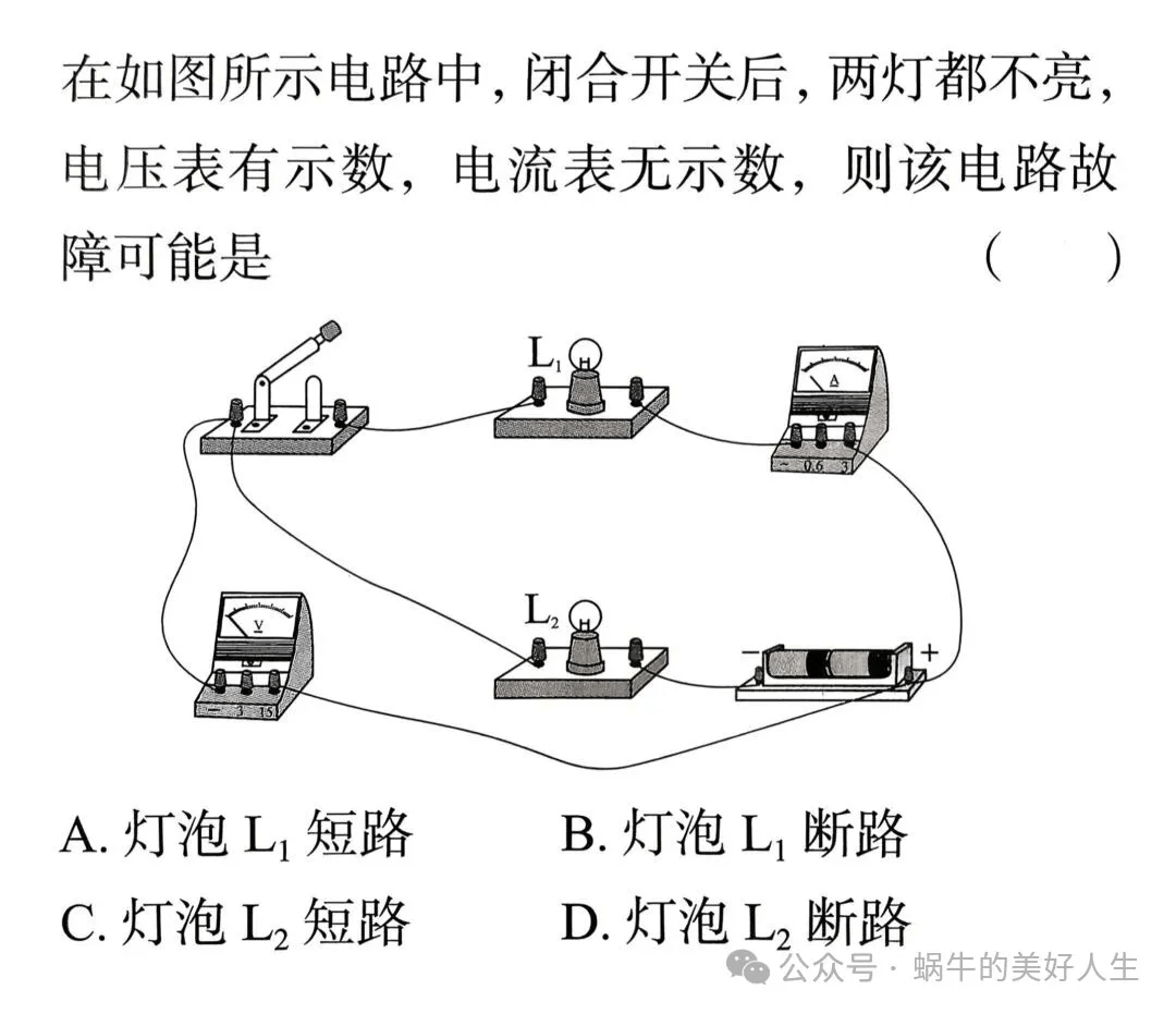 如果灯泡L₁发光,两电流表均有示数,说明L₂断路;如果灯泡L₁不发光,两电流表示数均为0,说明L₁断路。