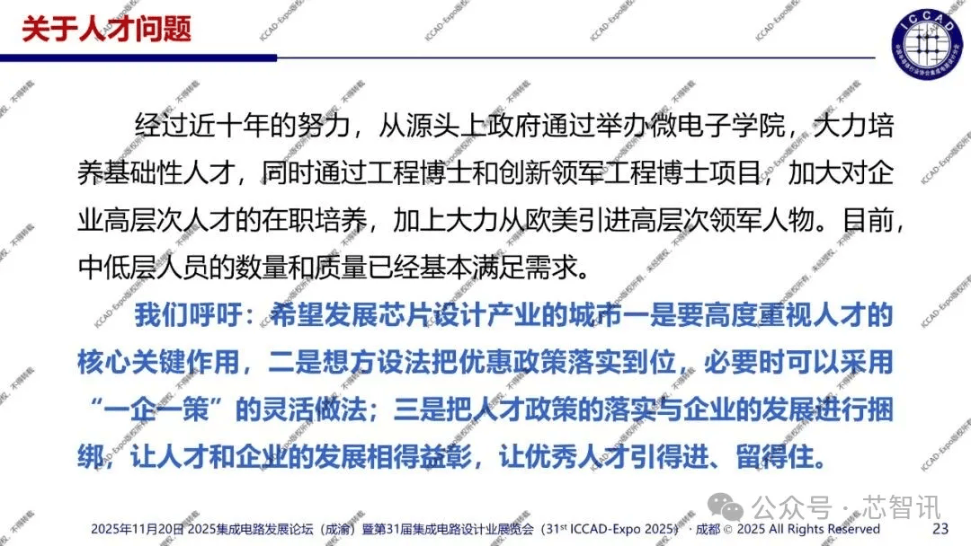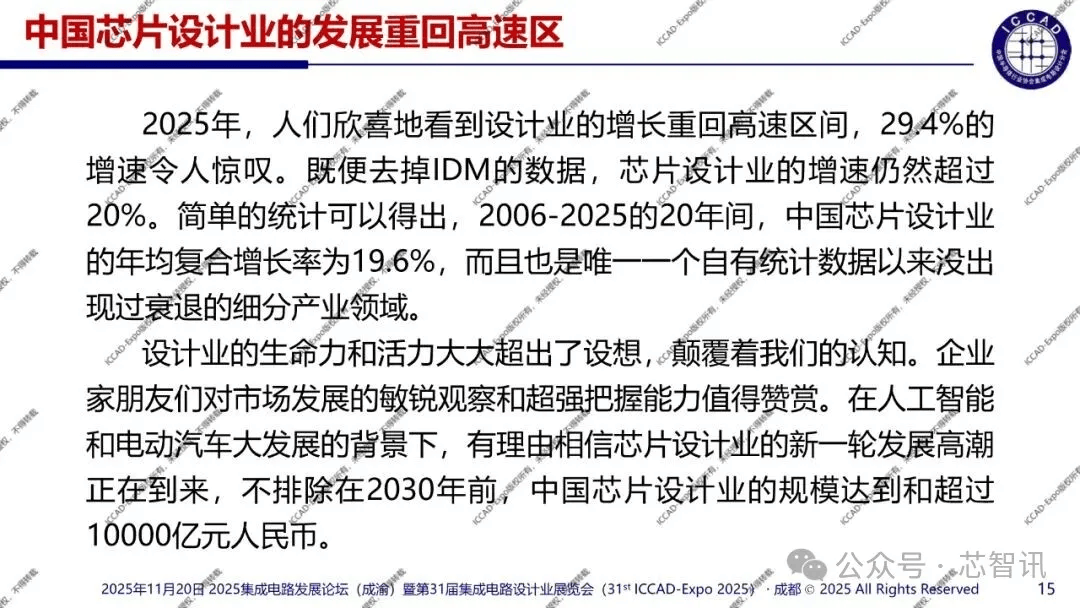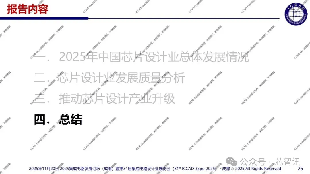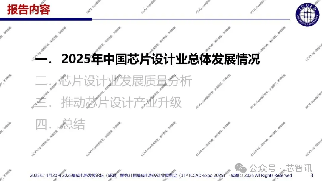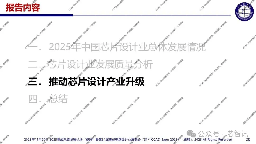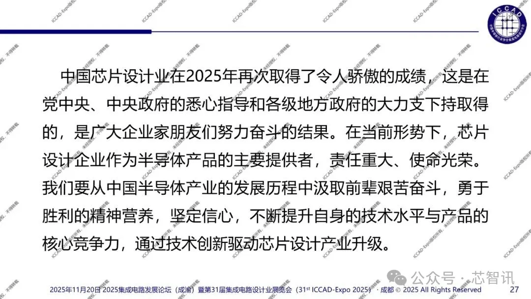 11月20日,“2025集成电路发展论坛(成渝)暨三十一届集成电路设计业展览会”(ICCAD-Expo 2025)在成都西博城正式拉开帷幕。中国半导体行业协会集成电路设计分会理事长魏少军教授为大会作了题为《技术创新驱动设计产业升级》的主旨报告。