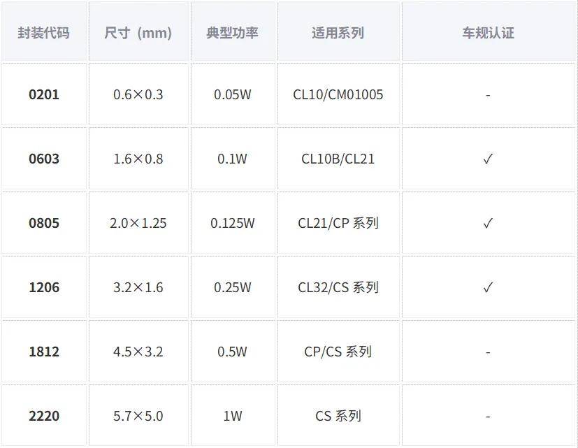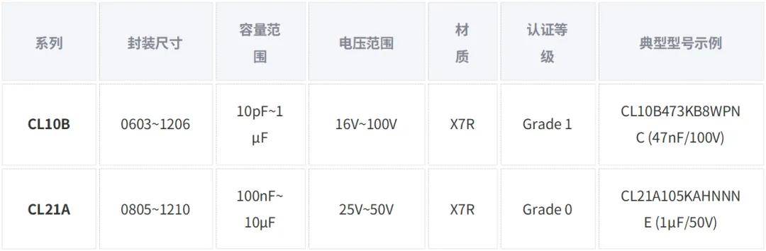 - 推荐系列:CL10B/CL21A(0603~1206封装,AEC-Q200认证)