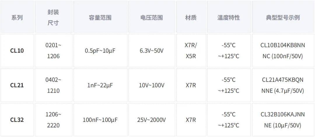 - 推荐系列:CL10/CL21(0402~0805封装)