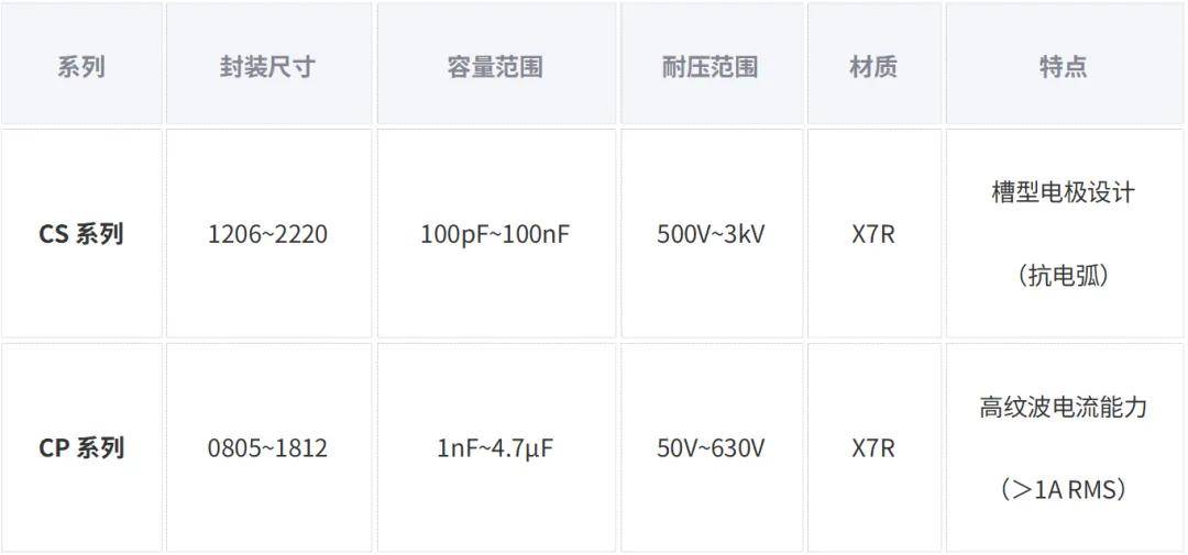 - 推荐系列:CP/CS系列(0805~2220封装)