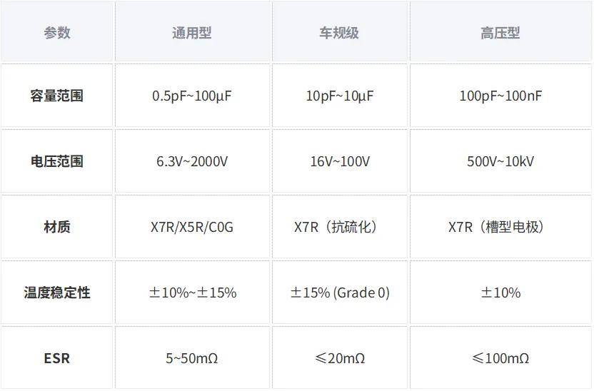 以下是三星电容(Samsung Electro-Mechanics)主要产品系列的规格对照表,涵盖封装尺寸、容量范围、电压等级、材质特性等关键参数,并附选型建议:
