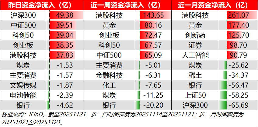 昨日资金净流向方向,沪深300(+49.38亿)、中证500(+39.51亿)和科创50(+39.04亿)。其中沪深300一改往日颓势,出现大幅度资金净流入。资金净流出方面,昨日无板块出现超10亿的大额资金净流出。