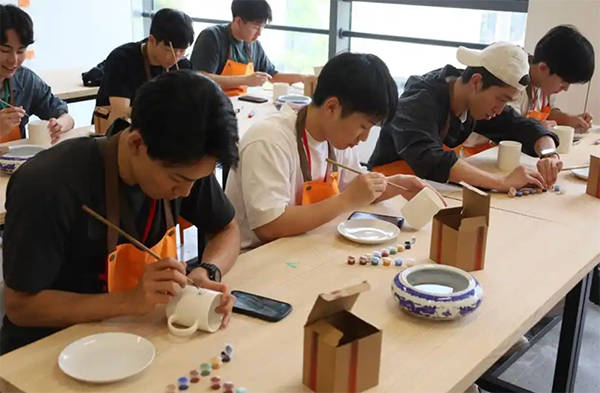 今年5月,日本青年访华团在景德镇体验釉上彩绘制。中国人民对外友好协会向新华社提供