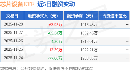 证券之星消息,11月28日,芯片设备ETF(560780)融资买入398.37万元,融资偿还334.42万元,融资净买入63.95万元,融资余额1916.43万元,近20个交易日中有11个交易日出现融资净买入。