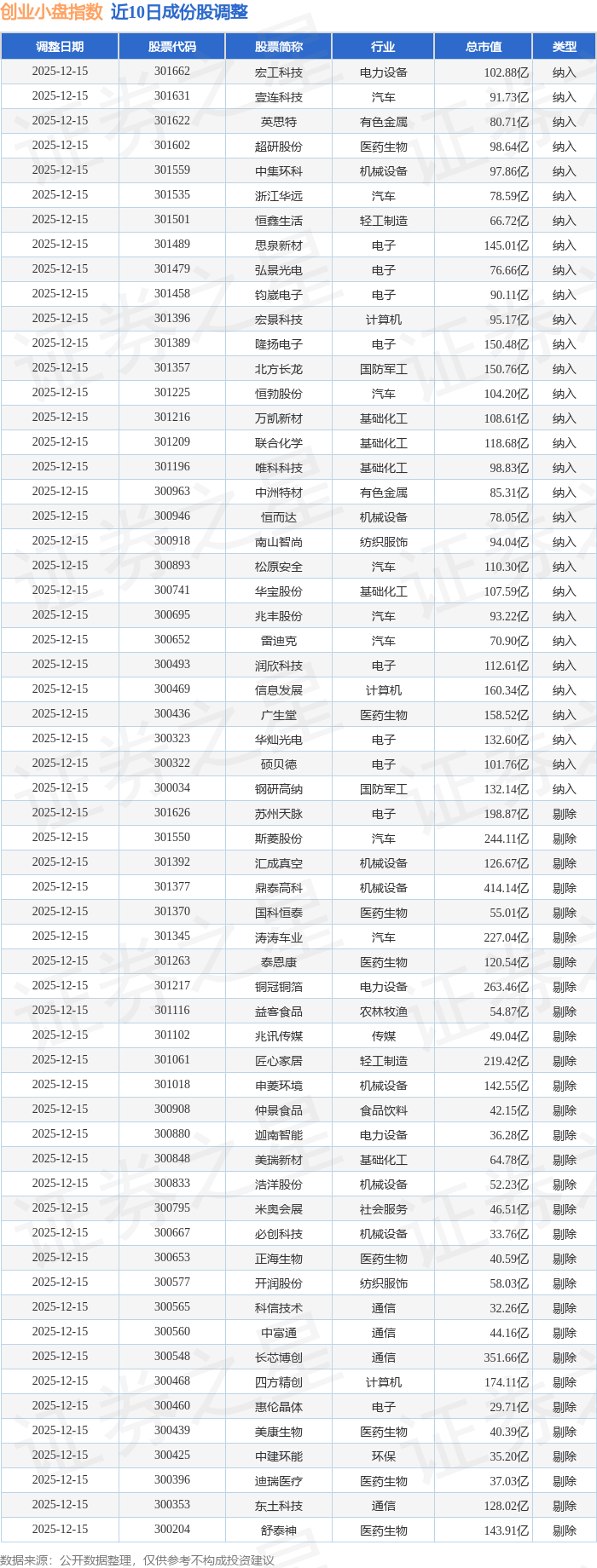 近10日内创业小盘(399020)指数成份股做了调整,新纳入了30只股票,剔除了30只股票。