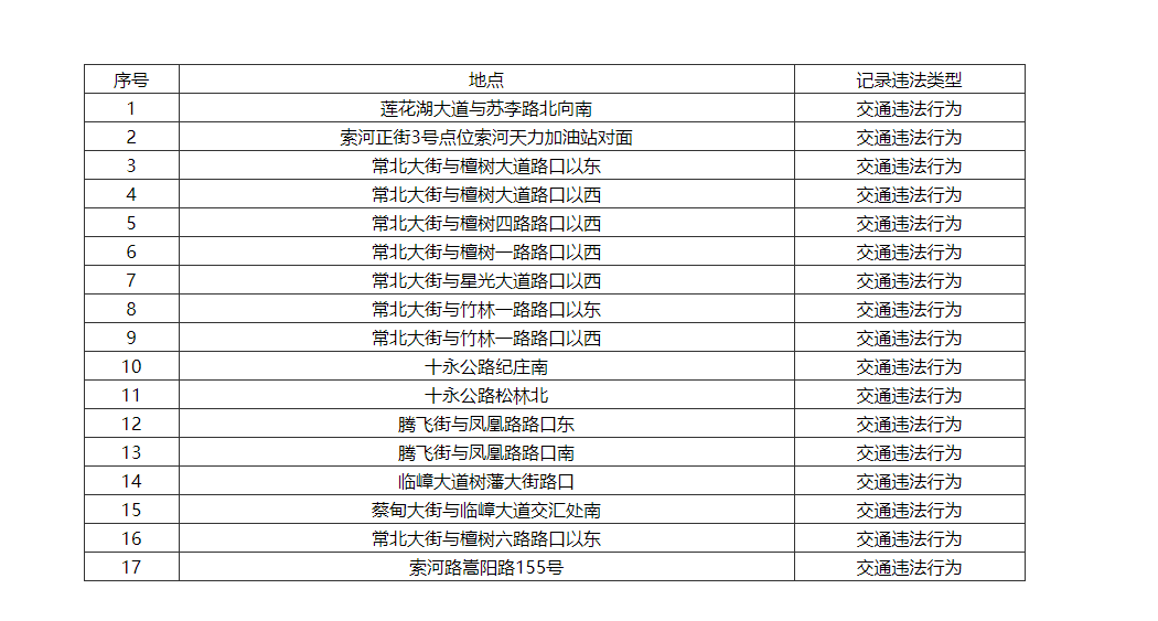 近日,武汉市公安局交通管理局发布多条公告,根据道路交通安全管理需要,拟在部分道路设置交通技术监控设备,请广大交通参与者自觉遵守道路交通安全法律法规。