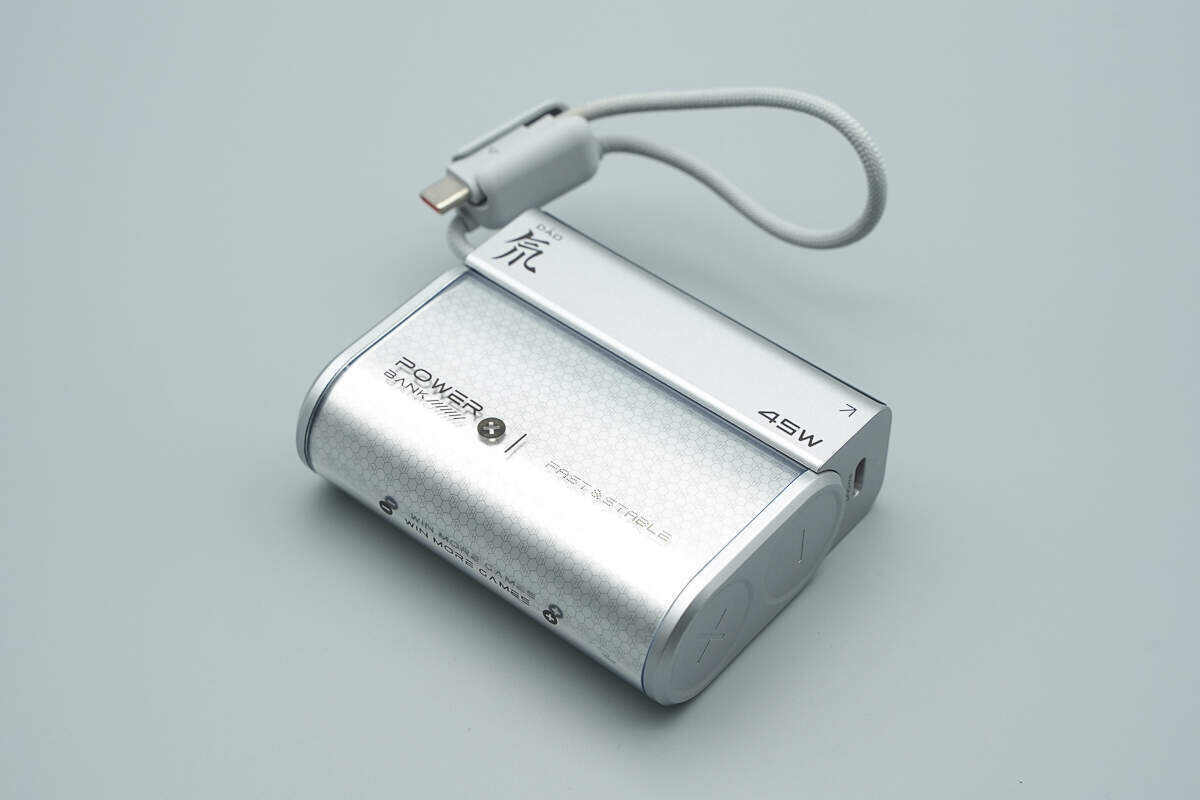 红魔氘锋系列推出了一款45W能量魔块移动电源,产品延续了系列相同外观设计语言,并配备USB-C自带线以及1个USB-C接口,支持单口45W快充。产品还配备了数显屏幕,可以查看移动电源剩余电量,方便用户规划用电。