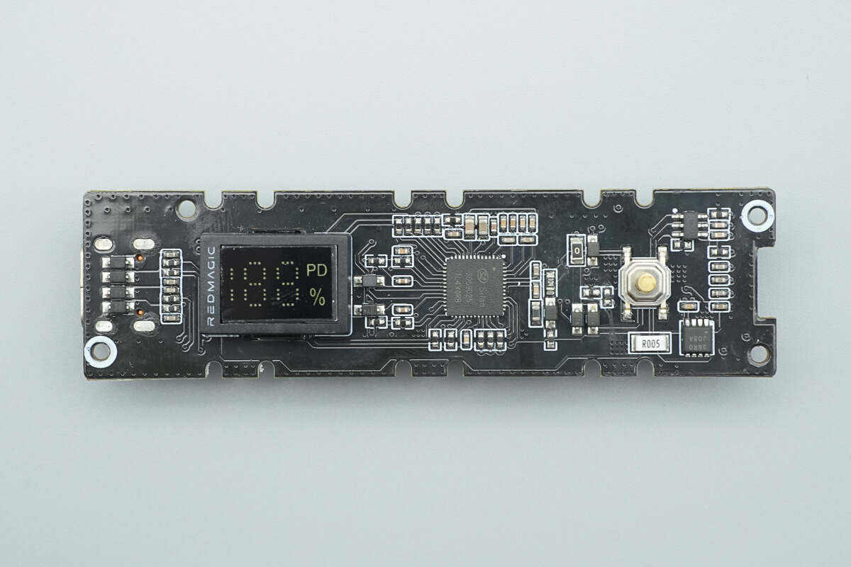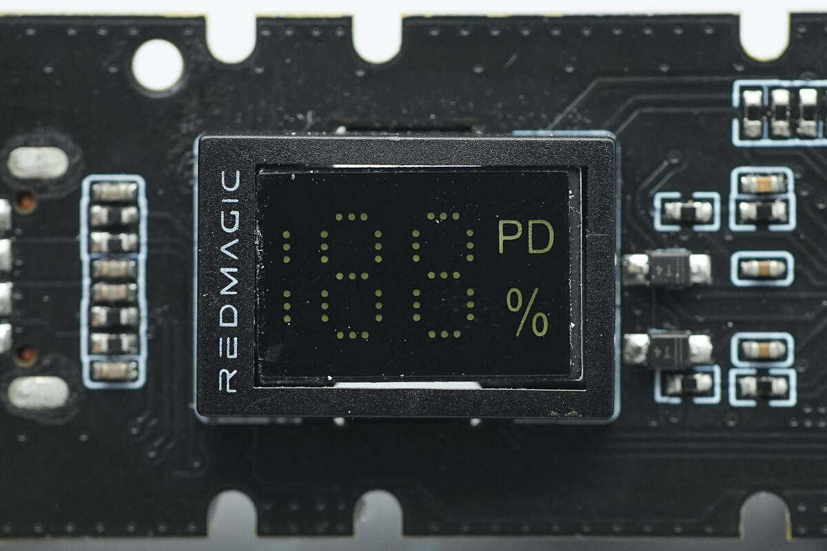 数显屏特写,上面印有红魔“REDMAGIC”英文标识。