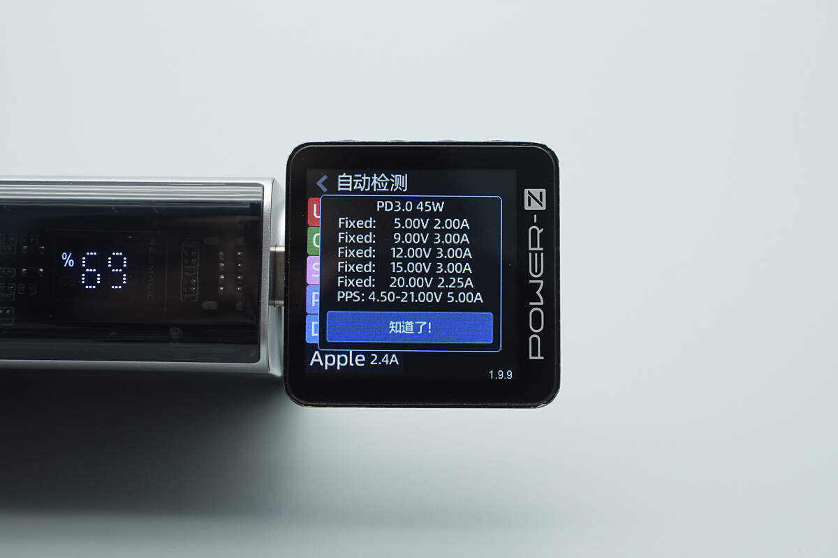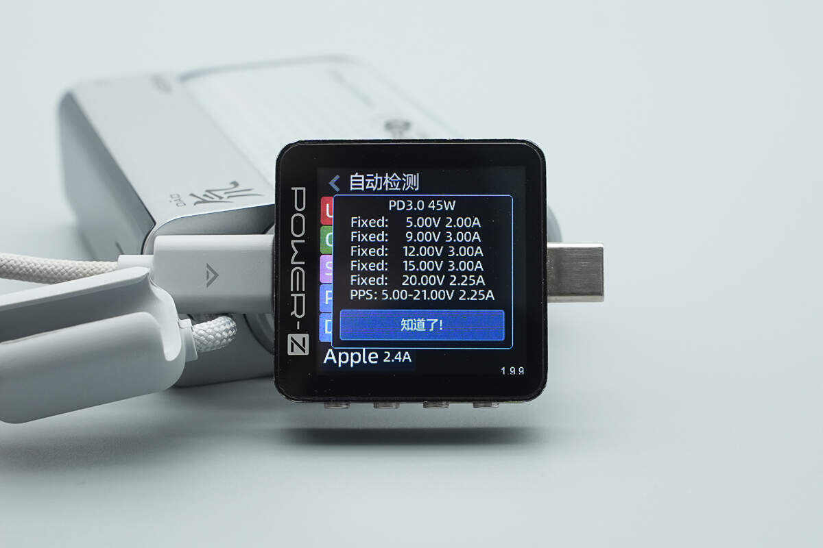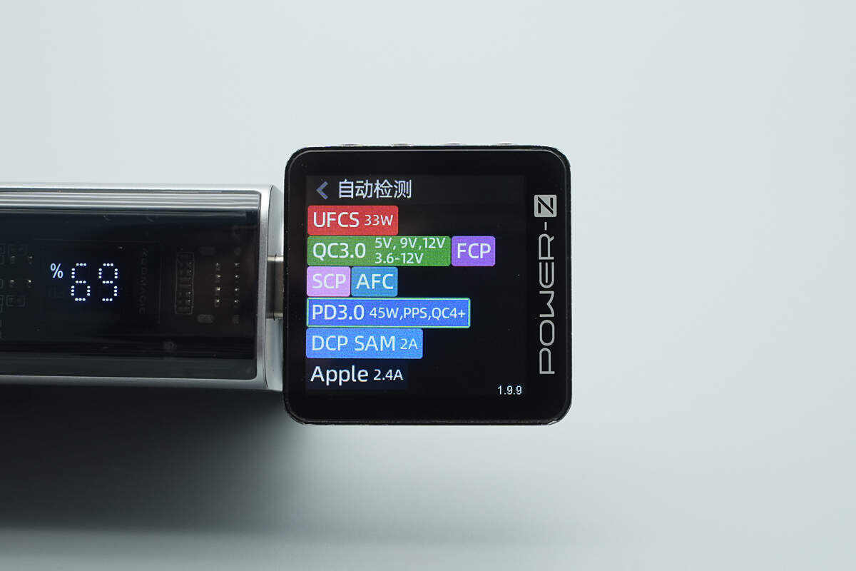 接下来测得USB-C口支持UFCS、QC4+/3.0、FCP、SCP、AFC、PD3.0、PPS、DCP SAM以及Apple 2.4A快充协议。