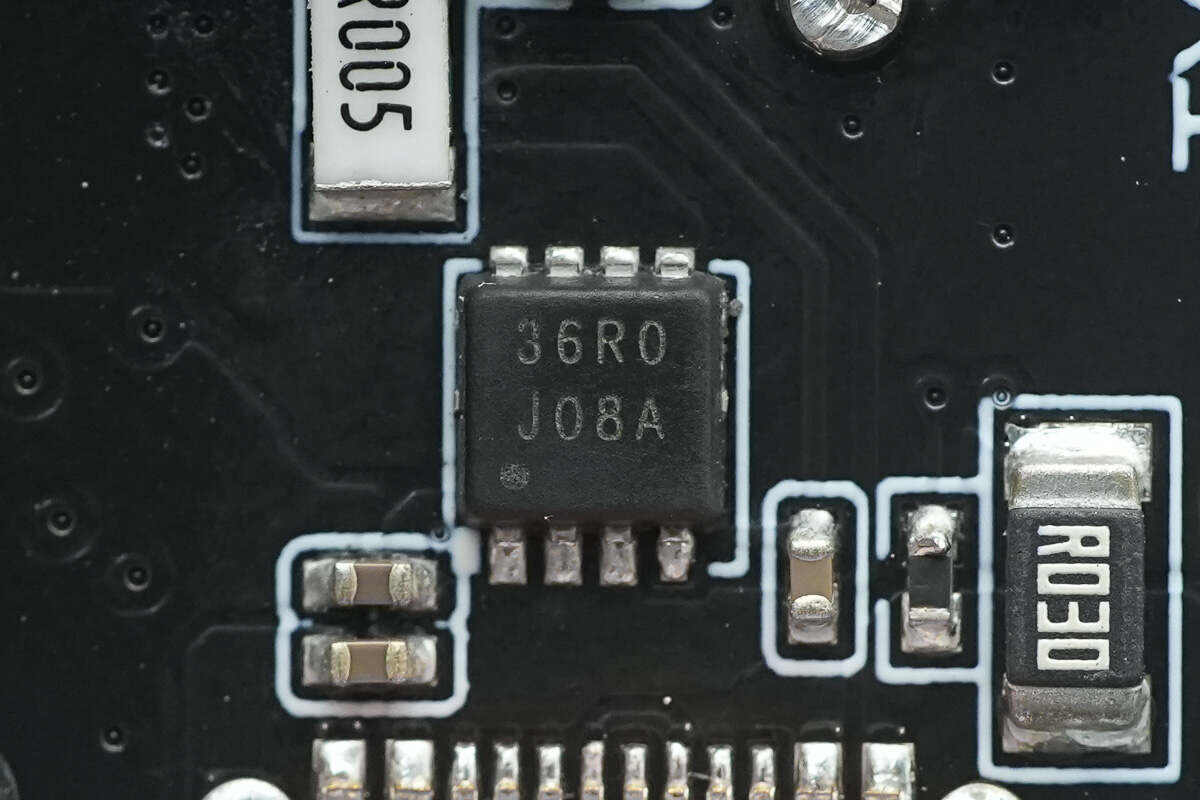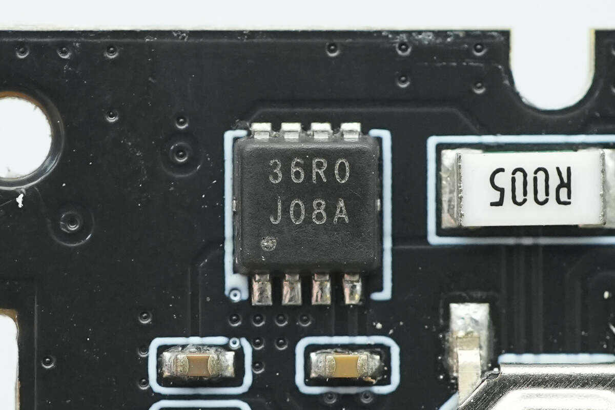 USB-C接口的VBUS开关管特写,丝印36R0。
