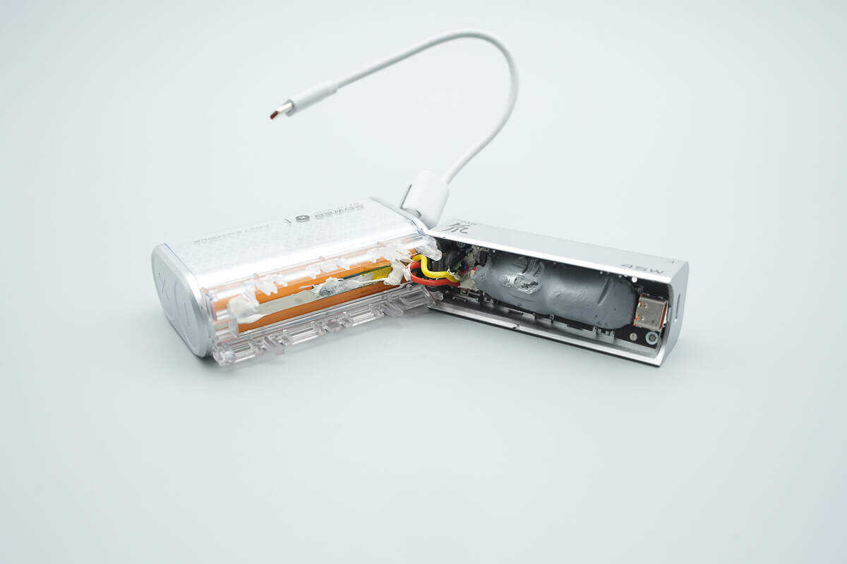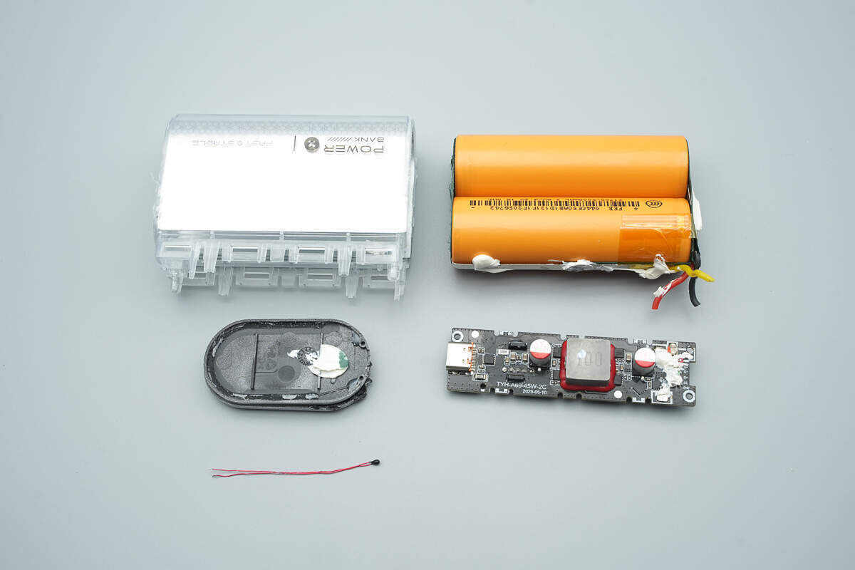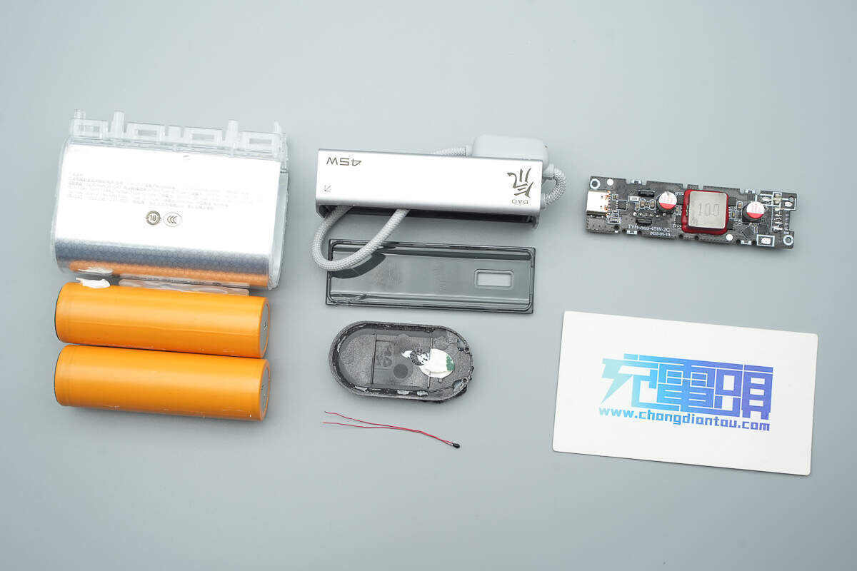 接下来,看一下红魔45W氘锋能量魔块移动电源的内部结构和用料。