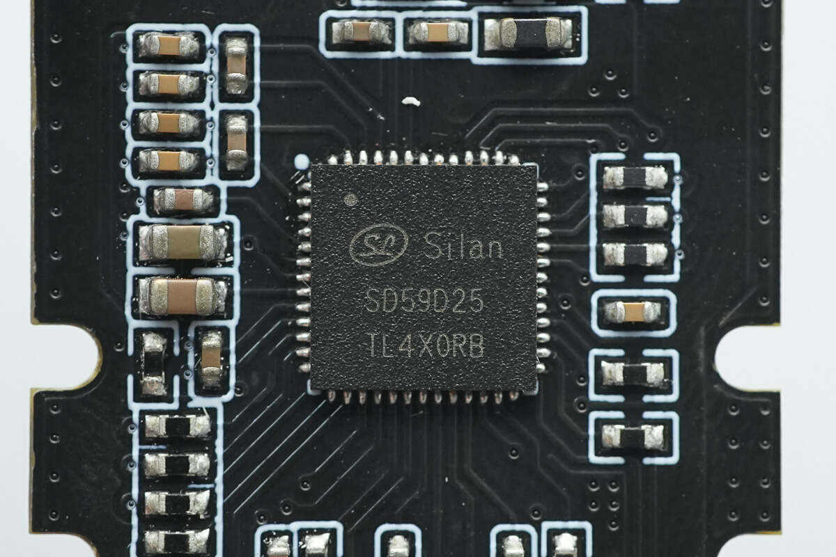 红魔氘锋45W移动电源SOC来自Silan士兰微,型号SD59D25,这是应用于移动电源的高集成度协议和电源控制芯片,集成LED指示及数码管显示,集成3路USB端口(最多两个C口),兼容PD3.0,PPS,QC4.0+,FCP,SCP,SFCP,AFC,BC1.2,APPLE,VOOC等快充协议。