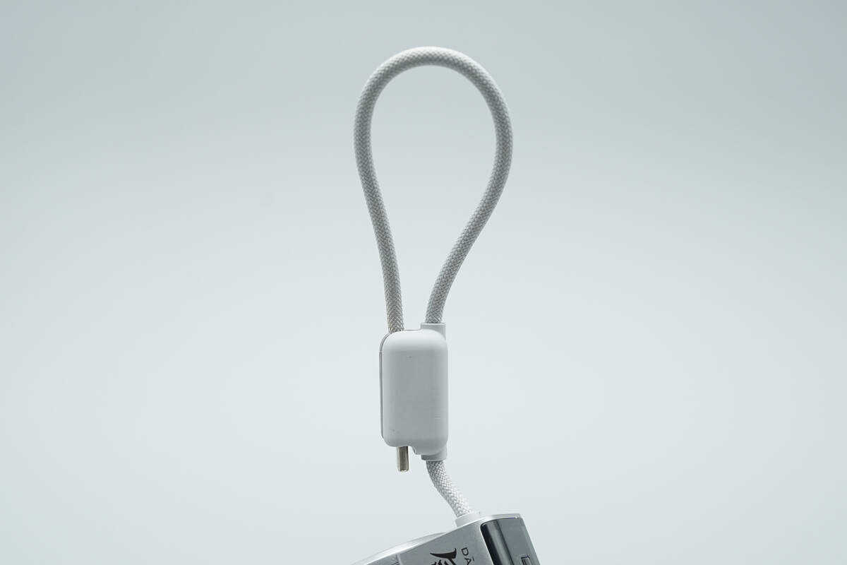 编织 USB-C 短线从胶套加固的出线口引出,软胶护套与金属壳体衔接紧密,能有效耐弯折。