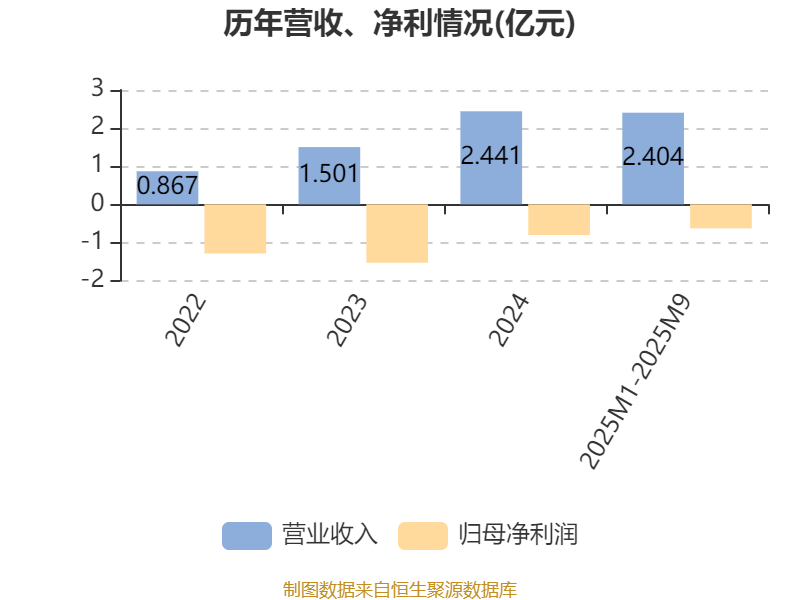 2025年1月1日至2025年9月30日,公司实现营业收入2.4亿元,同比增长24.17%;归母净利润亏损6306.4万元,上年同期亏损4960.3万元;经营活动产生的现金流量净额为-7944.1万元,上年同期为-5500.7万元;据申请书显示,平均净资产收益率为-35%。