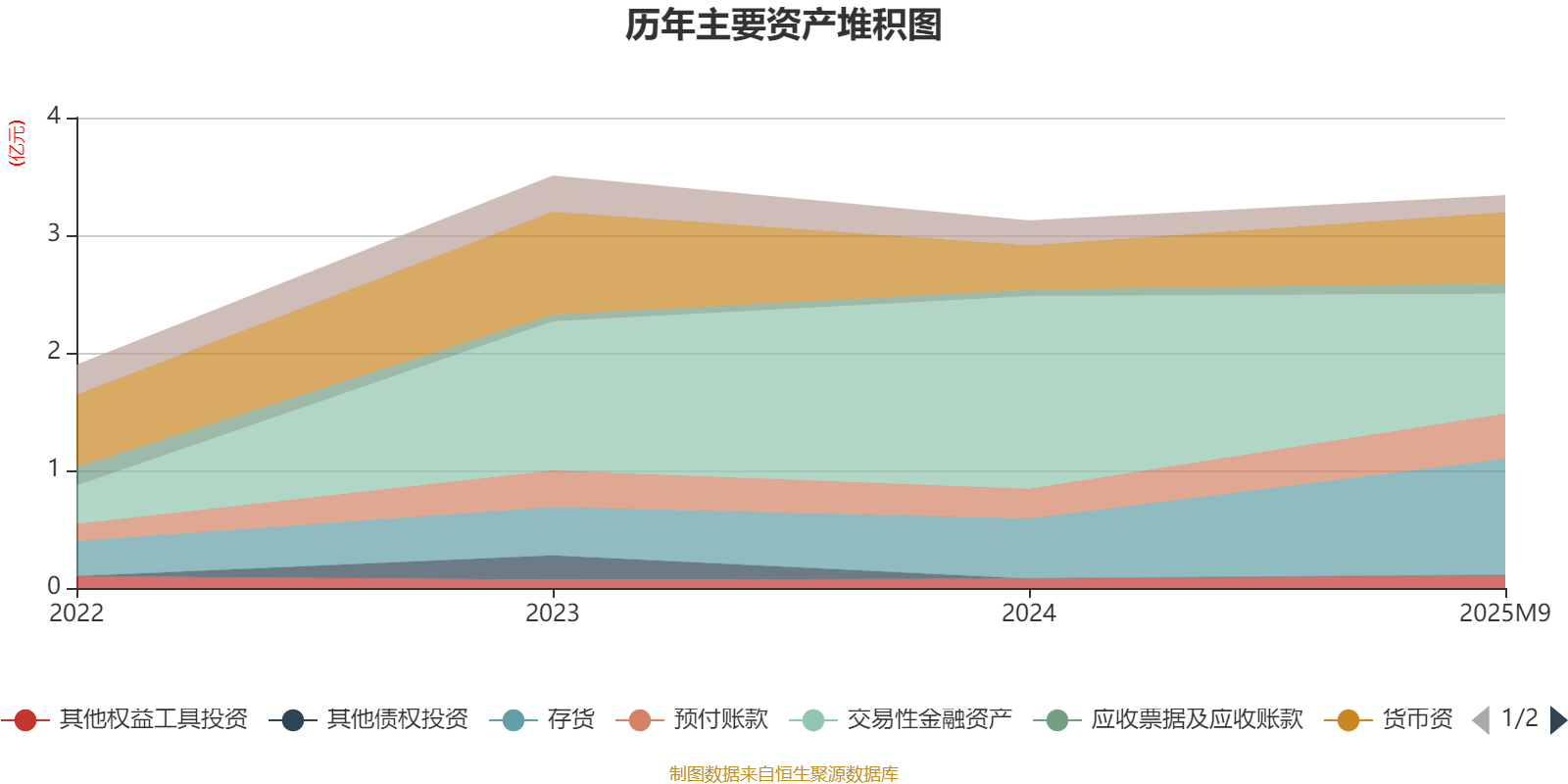 资产重大变化方面,截至2025年9月,公司交易性金融资产较上期末减少37.8%,占公司总资产比重下降21.91个百分点;存货较上期末增加93.78%,占公司总资产比重上升13.3个百分点;货币资金较上期末增加60.83%,占公司总资产比重上升6.08个百分点;预付账款较上期末增加52.37%,占公司总资产比重上升3.43个百分点。