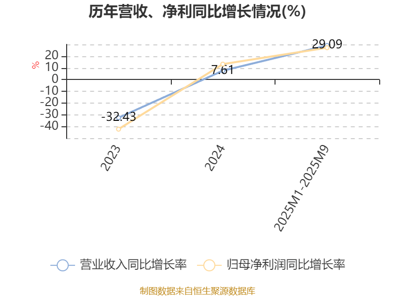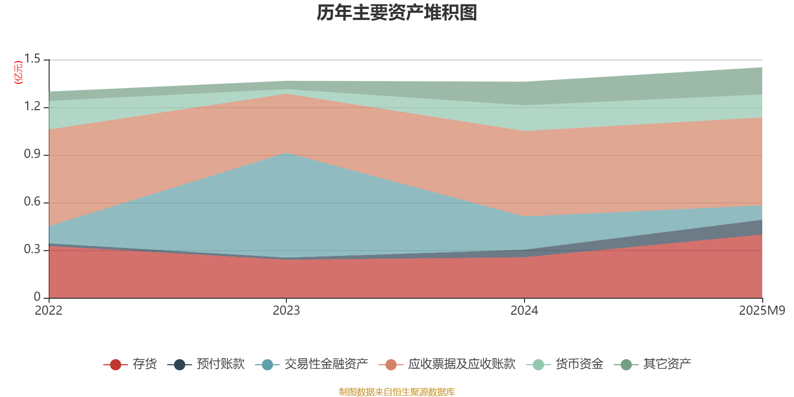 资产重大变化方面,截至2025年9月,公司交易性金融资产较上期末减少57.17%,占公司总资产比重下降9.23个百分点;存货较上期末增加55.83%,占公司总资产比重上升8.68个百分点;预付账款较上期末增加96.1%,占公司总资产比重上升2.93个百分点;货币资金较上期末减少10.67%,占公司总资产比重下降1.92个百分点。