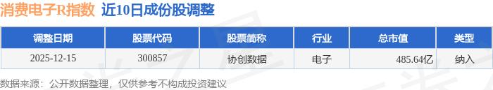 近10日内消费电子R(480030)指数成份股做了调整,新纳入了1只股票。