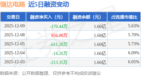 证券之星消息,12月9日,强达电路(301628)融资买入2053.29万元,融资偿还2223.73万元,融资净卖出170.44万元,融资余额1.66亿元。
