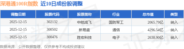 近10日内深港通100R(483007)指数成份股做了调整,新纳入了3只股票。