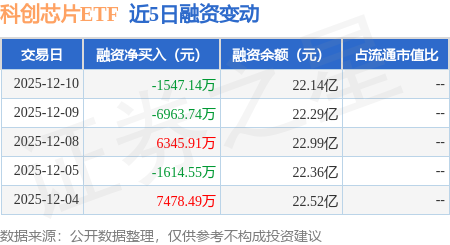 证券之星消息,12月10日,科创芯片ETF(588200)融资买入2.3亿元,融资偿还2.45亿元,融资净卖出1547.14万元,融资余额22.14亿元。