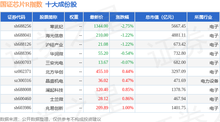 国证芯片R(480017)指数十大成份股详情如下: