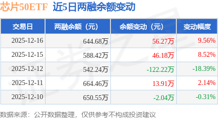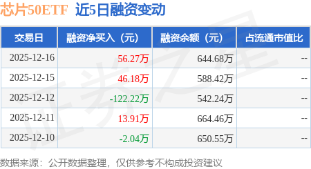 证券之星消息,12月16日,芯片50ETF(516920)融资买入127.23万元,融资偿还70.96万元,融资净买入56.27万元,融资余额644.68万元。