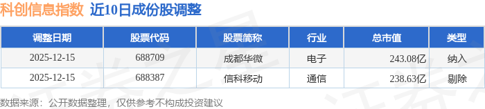 近10日内科创信息(000682)指数成份股做了调整,新纳入了1只股票,剔除了1只股票。
