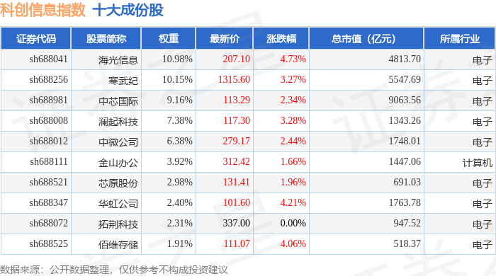 科创信息(000682)指数十大成份股详情如下: