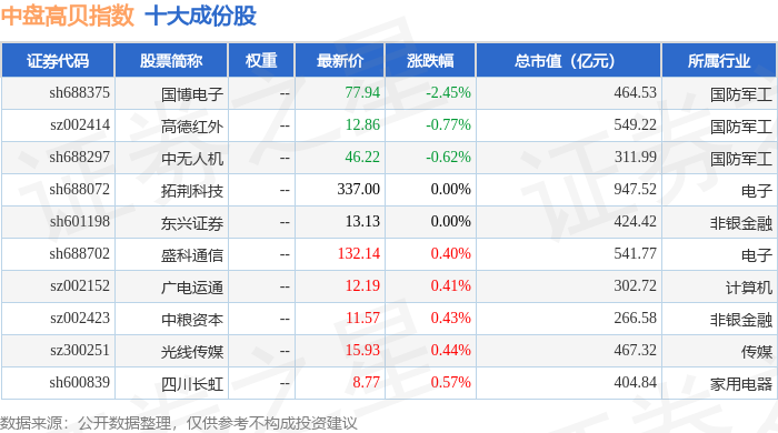 近10日内中盘高贝(399407)指数成份股做了调整,新纳入了32只股票,剔除了32只股票。