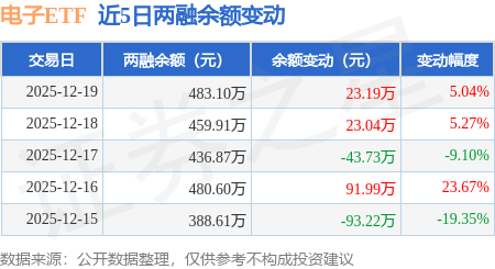证券之星消息,12月19日,电子ETF(515260)融资买入100.19万元,融资偿还76.99万元,融资净买入23.19万元,融资余额483.1万元。