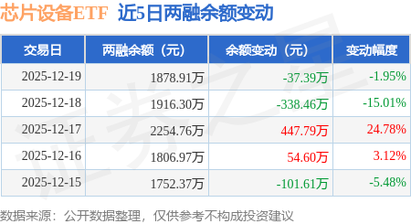 证券之星消息,12月19日,芯片设备ETF(560780)融资买入288.0万元,融资偿还325.39万元,融资净卖出37.39万元,融资余额1878.91万元。