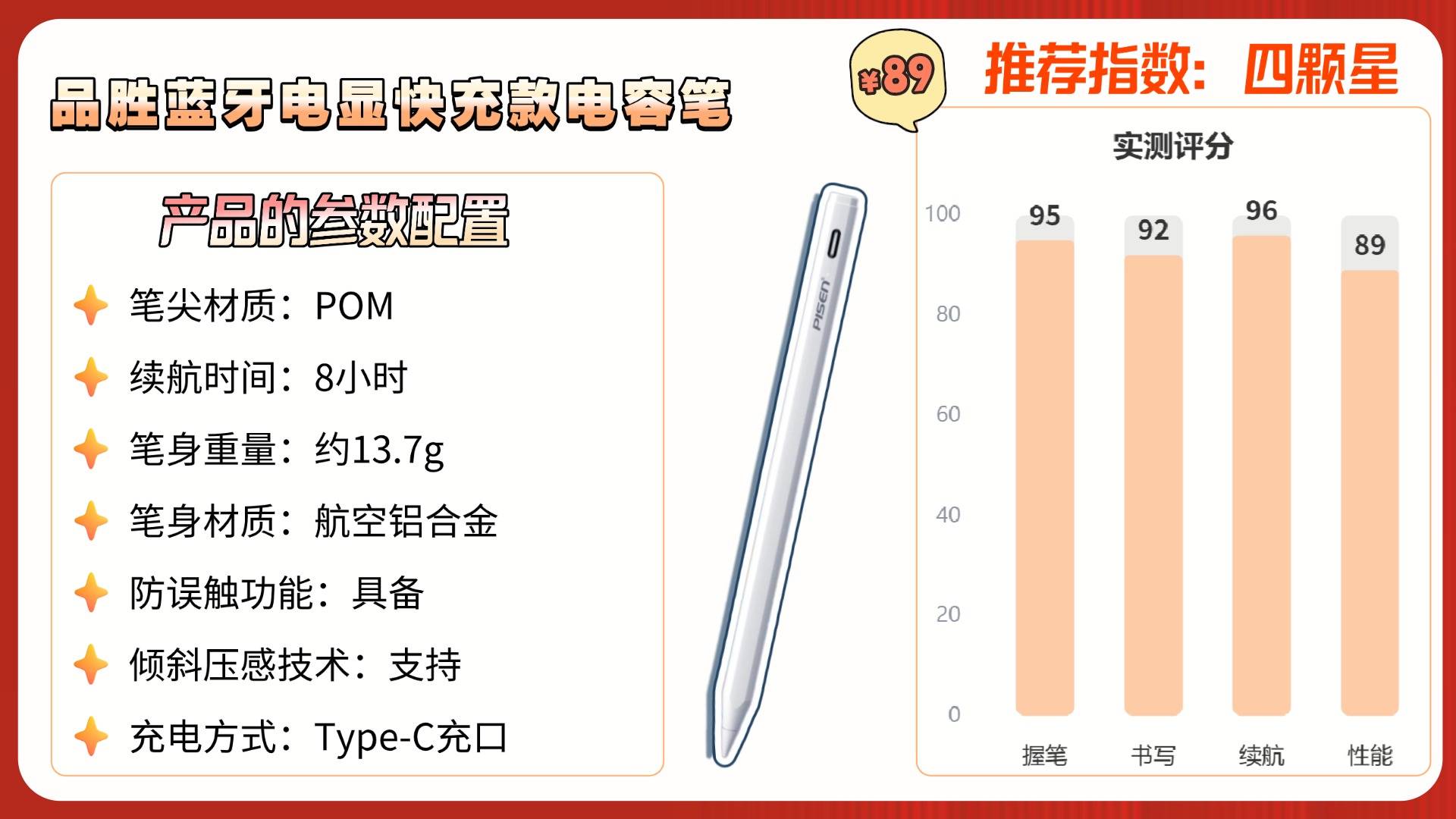 电容笔啥牌子的好?推荐品牌方向9:品-胜蓝牙电显快充款电容笔