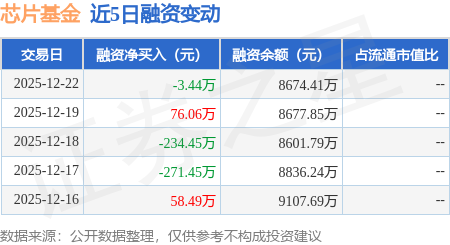 证券之星消息,12月22日,芯片基金(159801)融资买入1081.56万元,融资偿还1085.0万元,融资净卖出3.44万元,融资余额8674.41万元。