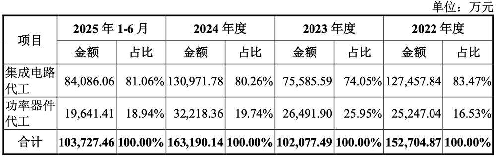 报告期各期,其主营业务收入均由晶圆代工业务构成,主营业务毛利率分别为-21.83%、-114.90%、-71.00%、-57.01%,主要受单位售价及单位成本变动影响,2024年以来主营业务毛利率已呈现快速改善趋势。