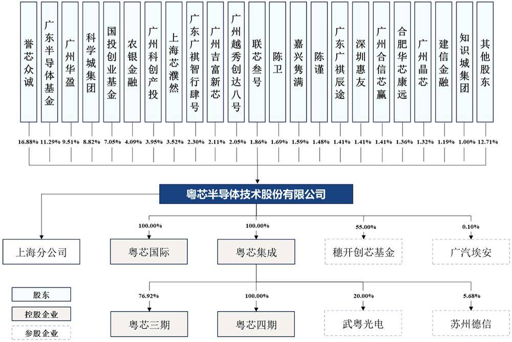 截至招股书签署日,粤芯半导体的股权结构如下: