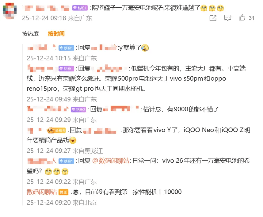 针对其他问题,该博主在评论互动中提到,目前未见到其他性能机型配备10000mAh电池;而对于小米17 Ultra徕卡版的升级,他表示主要在影像方面,并指出普通版因硬件限制不支持相关功能。