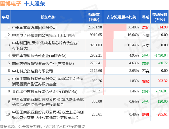 根据国博电子2025年三季报公布的十大股东详情如下:
