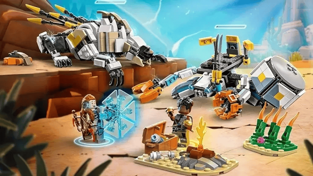 77037 埃洛伊与瓦尔大战壳行者和锐齿兽于 2025 年 3 月 1 日发售,是目前唯一一款基于乐高地平线大冒险电子游戏的套装。